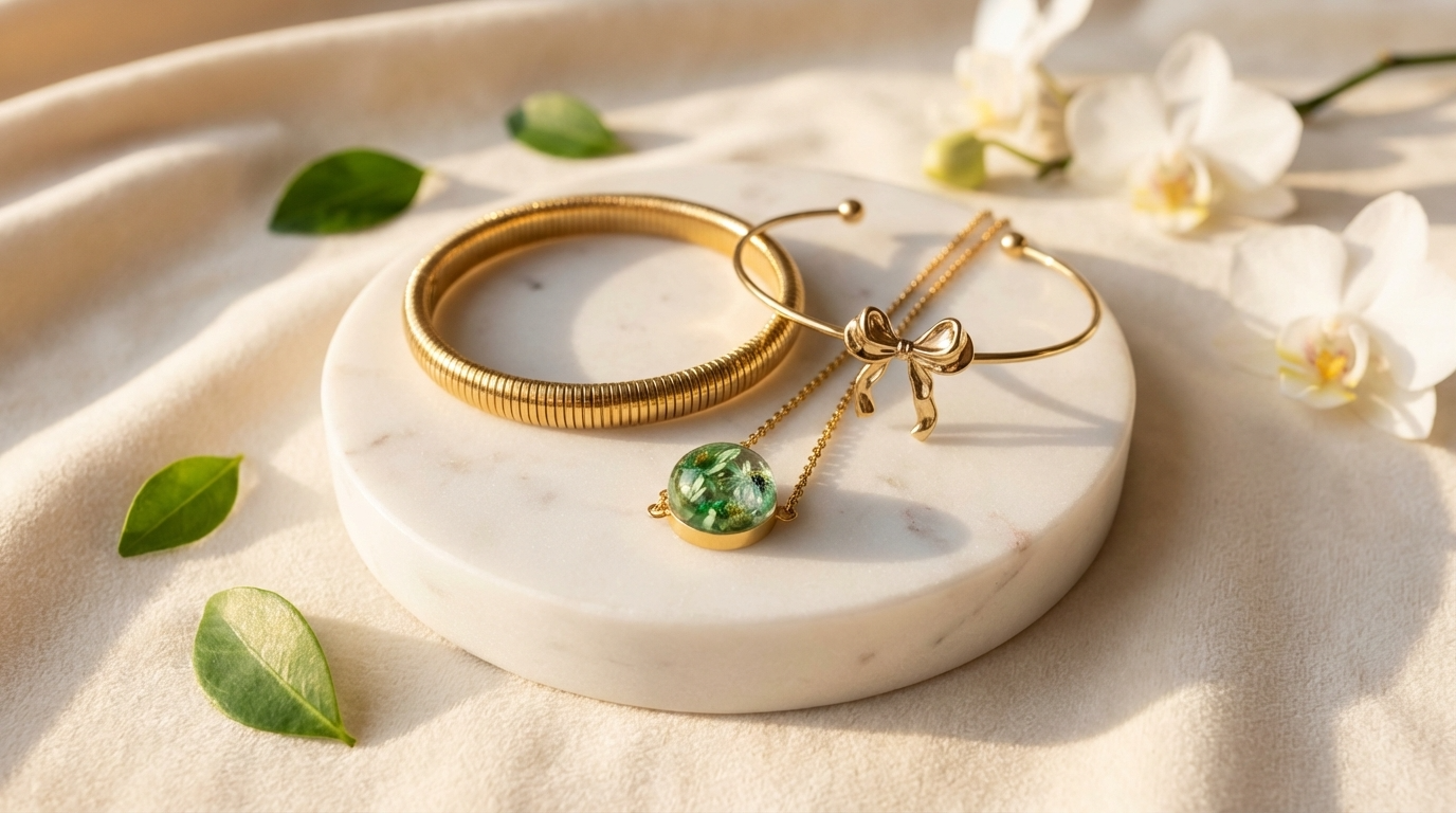 Nuestras joyas no solo están pintadas; el oro está fundido a nivel molecular con el acero mediante tecnología de iones, garantizando un brillo que te acompañará por años sin perder su color.