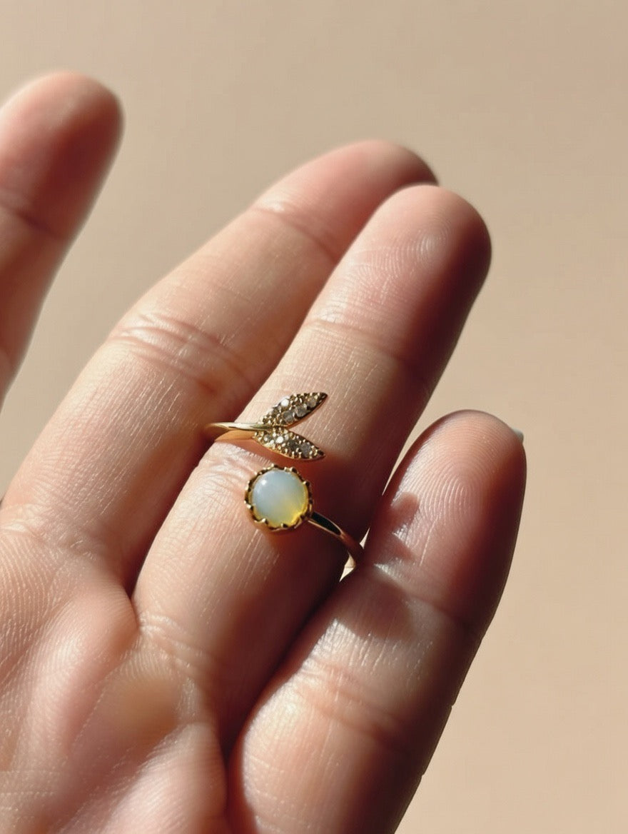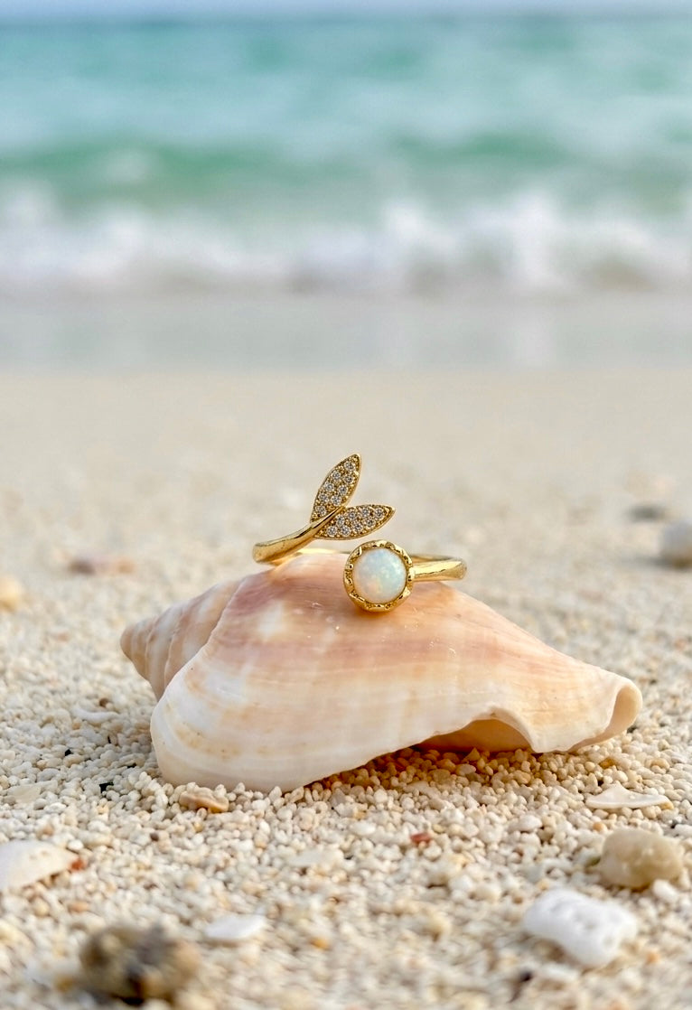 SORTIJA COLA DE SIRENA AJUSTABLE ACERO CON CIRCONITAS DORADA