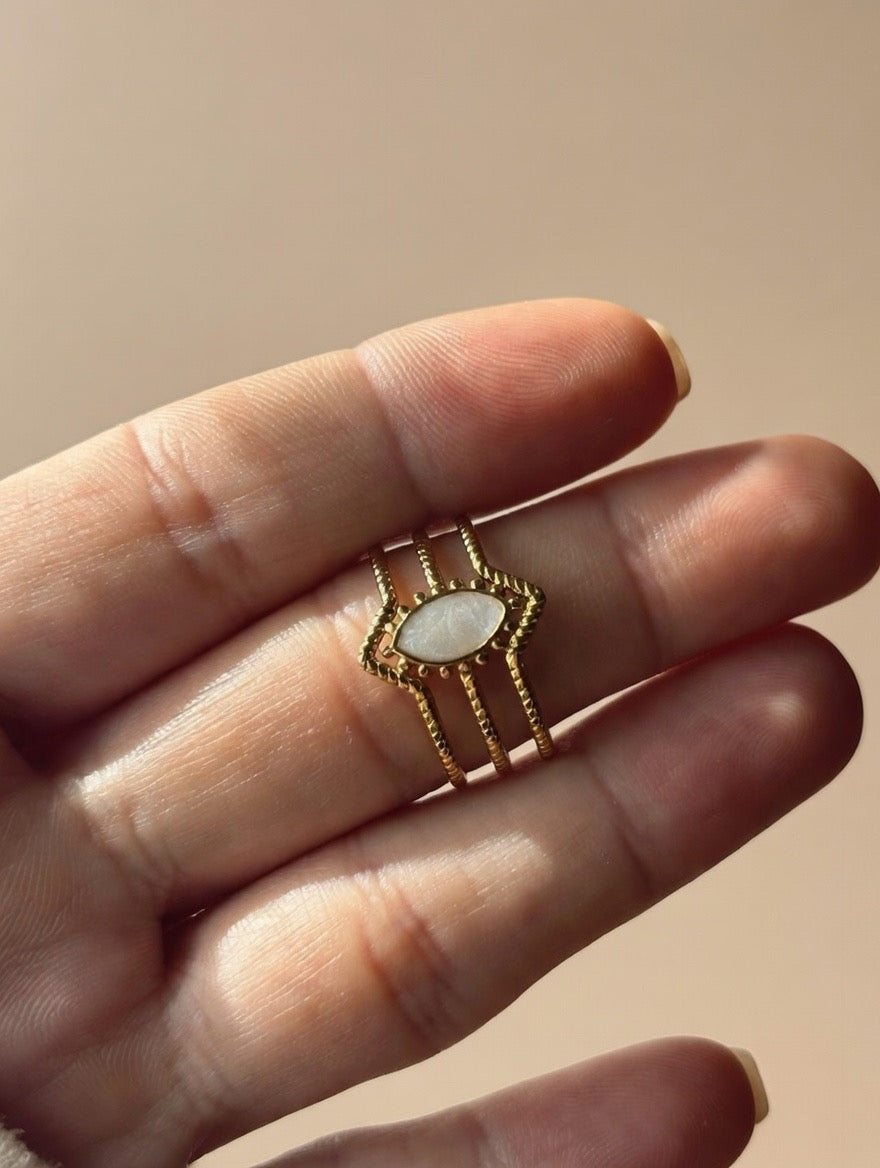 Anillo Triple Banda con Piedra Central - Acero 316L